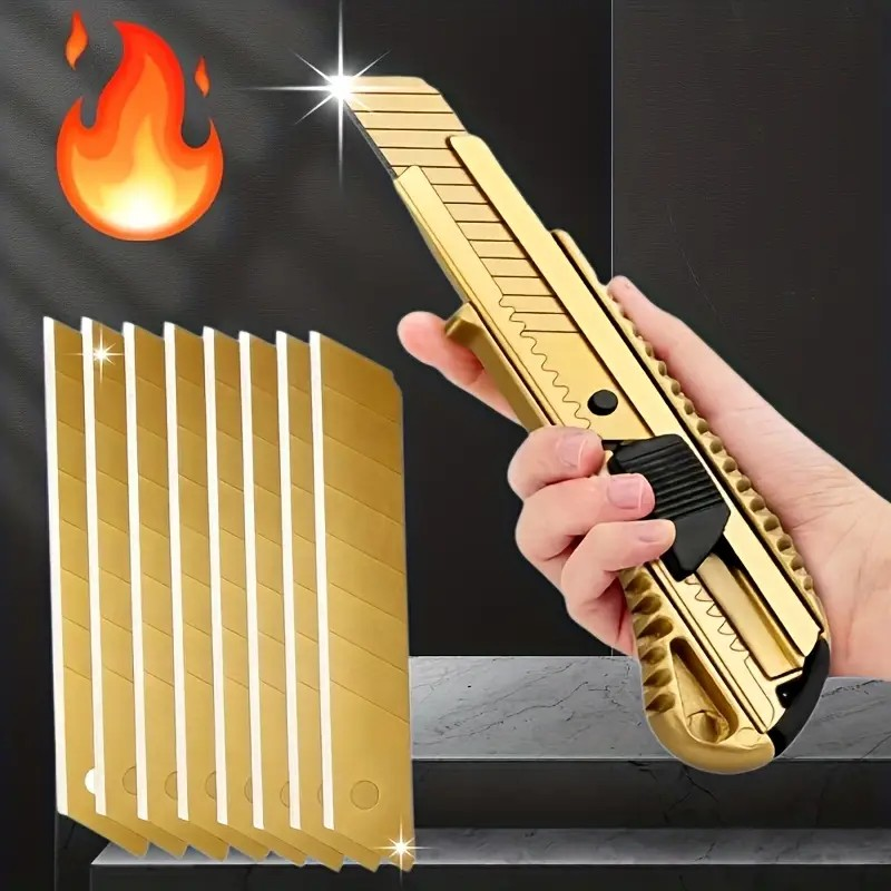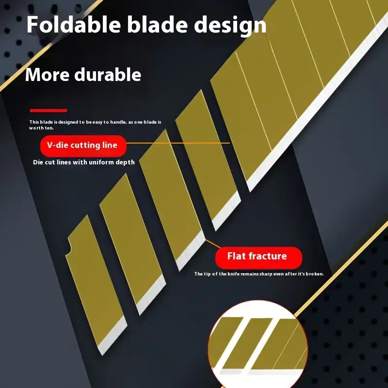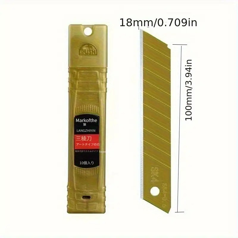 Sada 10 alebo 30 kusov titánovo pokovovaných remeselných nožov s 60° ostrým uhlom čepele a hrúbkou 6 mm. Vysoká pevnosť umožňuje viacnásobné zlomenie bez straty ostrosti. Ideálne na rezanie kartónu, penových panelov, plastov či fólií. Odolné, ľahké a praktické – nevyhnutná výbava pre každého remeselníka, modelára alebo DIY nadšenca.